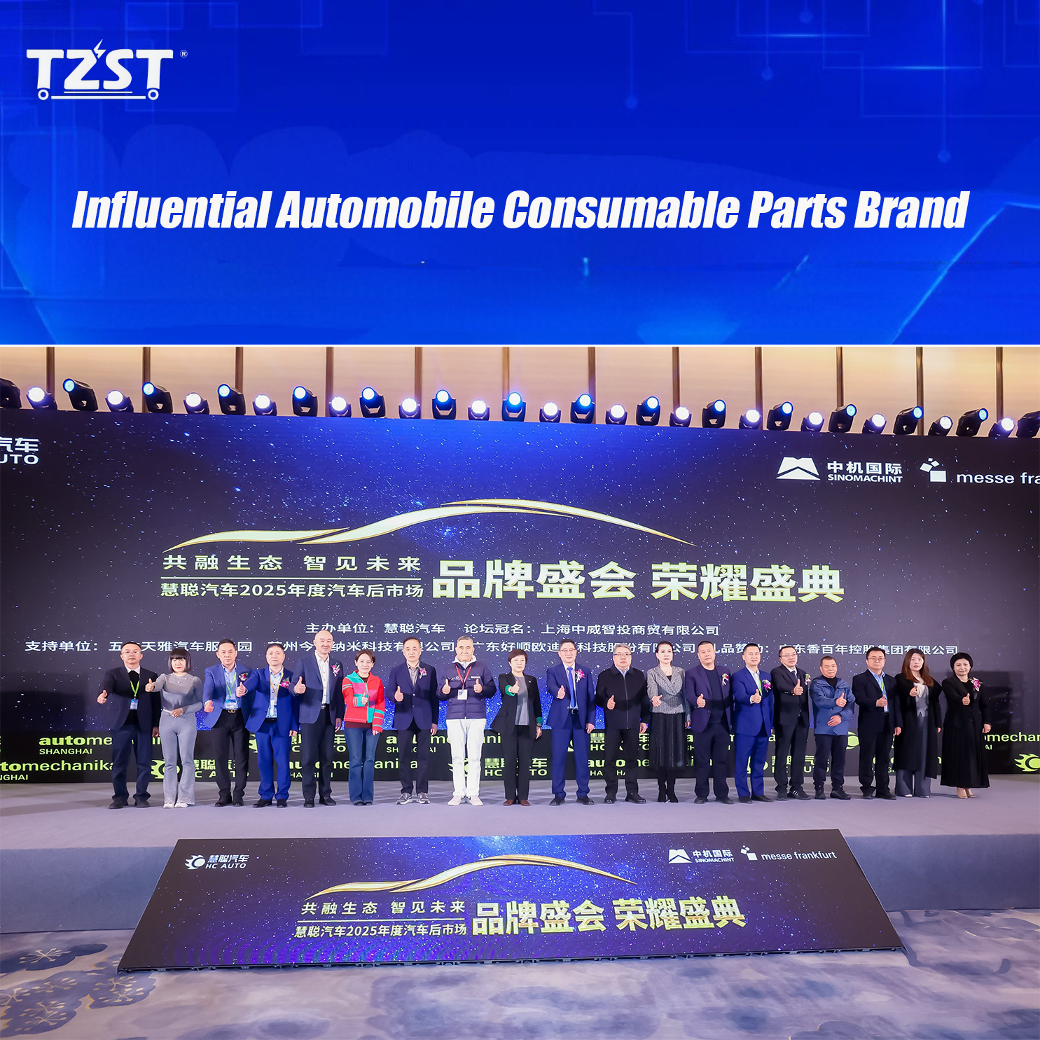 On November 27, 2025, the “Integrated Ecosystem and Intelligent Future – 2025 Automotive Aftermarket Brand Event Glory Ceremony ” hosted by HC Automobile and supported by China Machinery International was grandly held at the Shanghai National Convention and Exhibition Center. As an authoritative event in automotive aftermarket, this event brings together leaders of industry associations, experts and scholars, representatives of brand companies, and industry elites such as national distributors and terminal service providers to discuss the changing trends and development opportunities of the automotive aftermarket in the new energy era. TZST Battery was invited to attend the ceremony and won the ” 2025 Influential Automobile Consumable Parts Brand ” award for its outstanding performance in product innovation and market services.